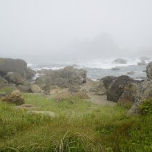 約2.3キロにわたって広がる砂浜は、散歩できる砂浜として東北北部では最大規模。歩くとキュッと音がする「鳴砂」の浜としても知られ、遊泳は禁止されています。行った時霧があって、海も波が荒い、ウミネコが飛んで、又違う風景でした。
