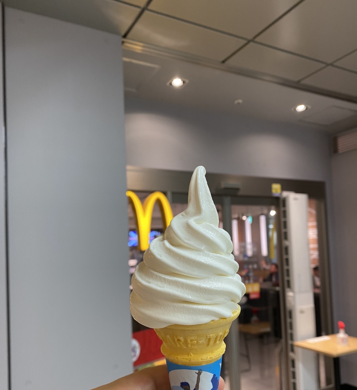 コンビニでアイスでもと思ったら、すぐ近くのマックに、そういえばツイストがあったなと。このツイストは味も食感もソフトクリームのようなもので、値段はなんと100円。で、安く美味しくいただきました。第二のマックは店内広々で席数の多いイートインが備わっています。場所は地下一階。