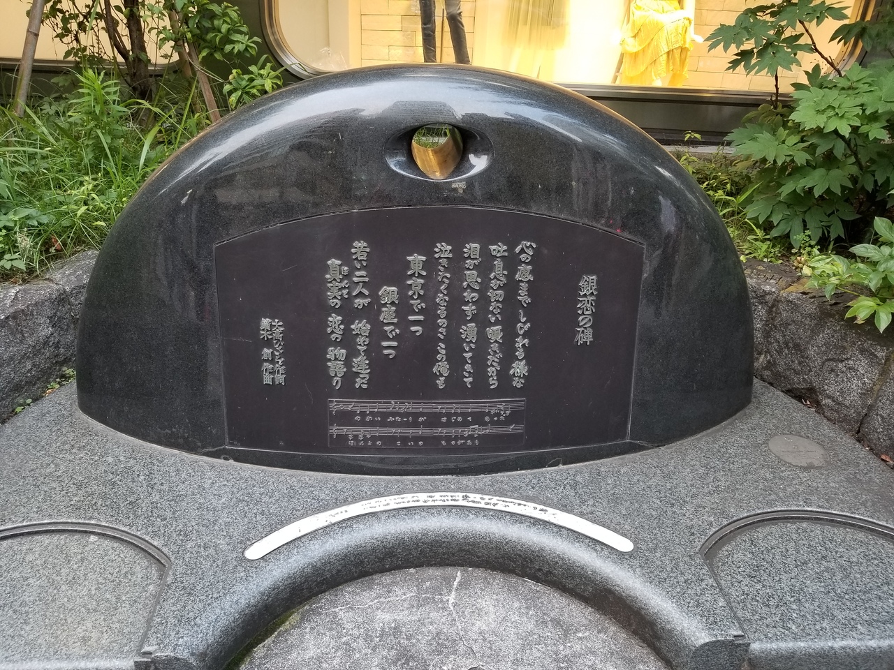 この功績を後世に伝えるための昭和の大ヒットソングの碑が数寄屋橋近くの西銀座デパートの付近に設置されている。