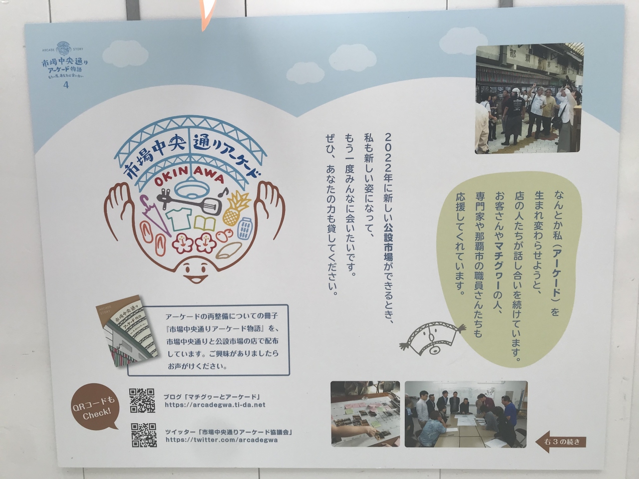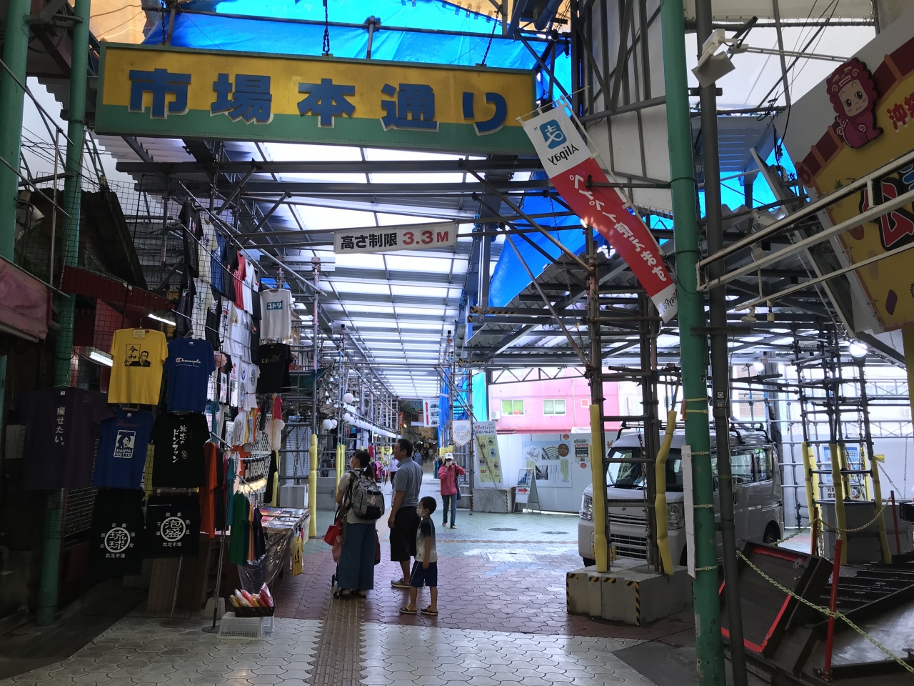 先には建て替え中の公設市場があり、右に入ると仮設市場あり