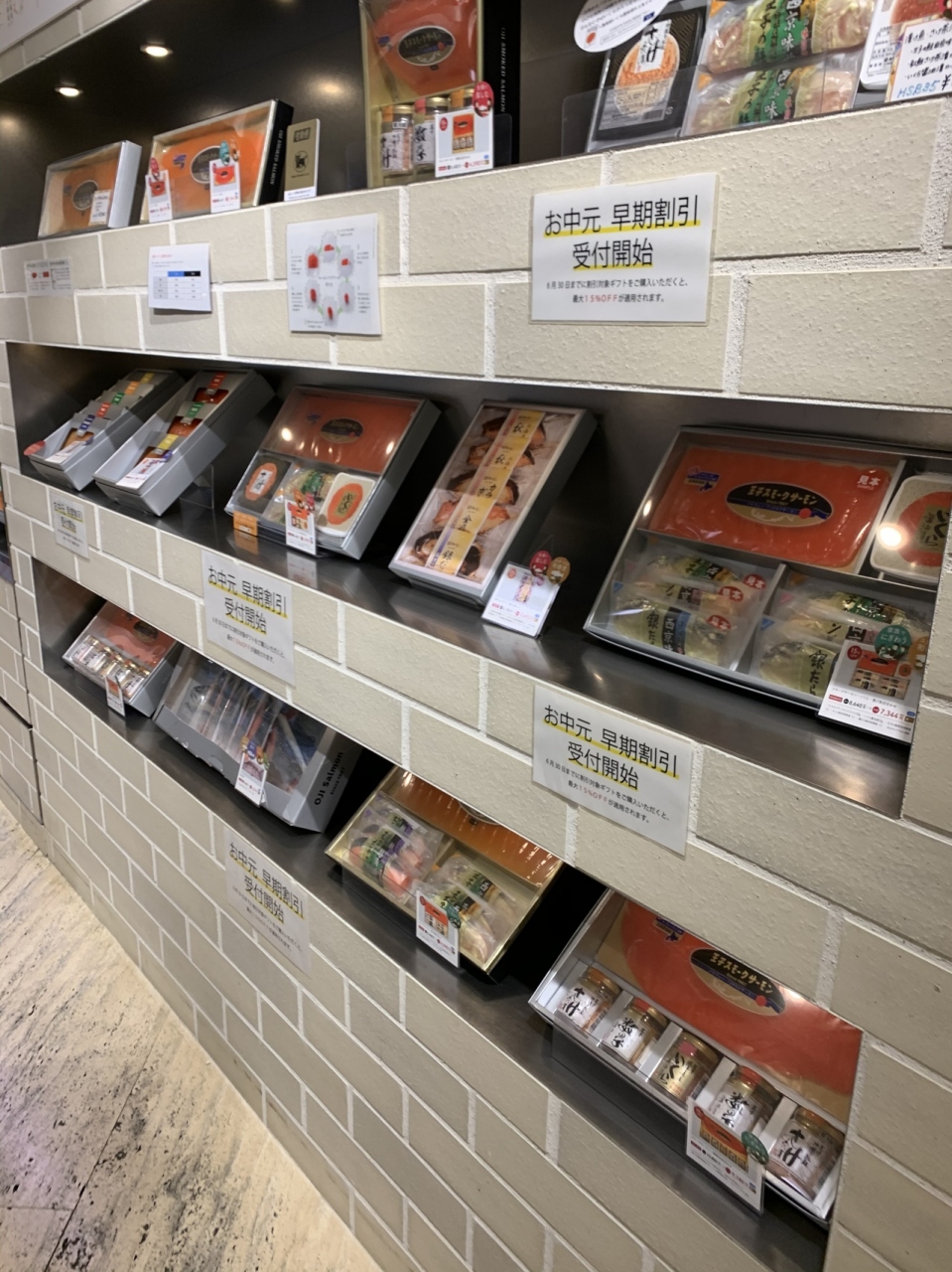 生のサーモンや干した物、缶詰など色々あります。生のサーモンを購入しましたがレアで食べたら最高。値段もお安くリピートします。他の名店の物も売っていたりして、配送製品も豊富でした。松屋の裏なので使い勝手も良いお店です