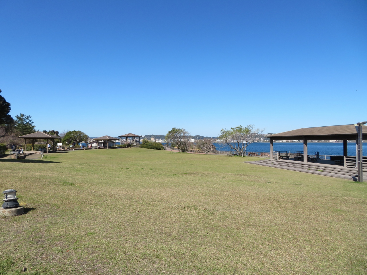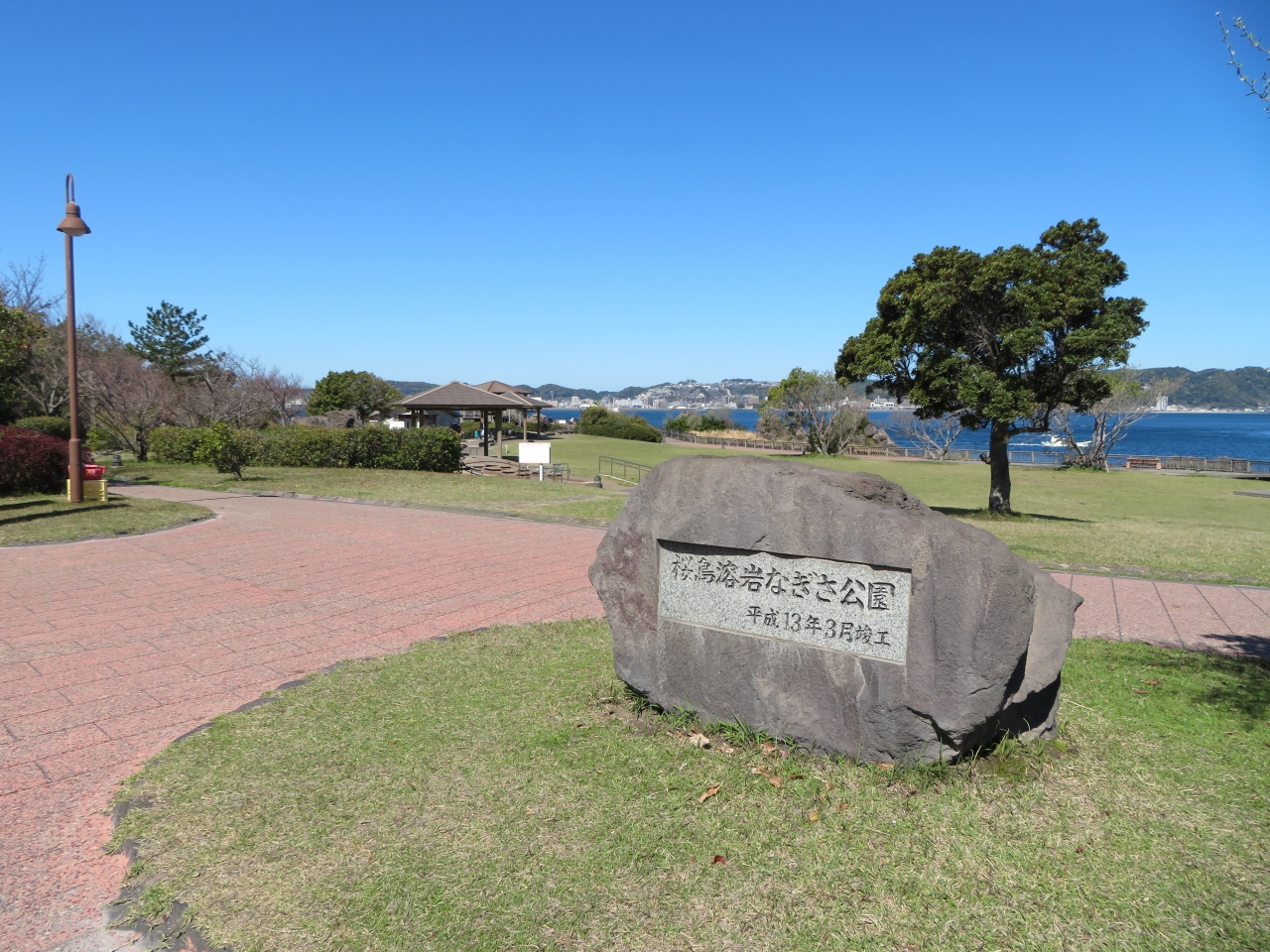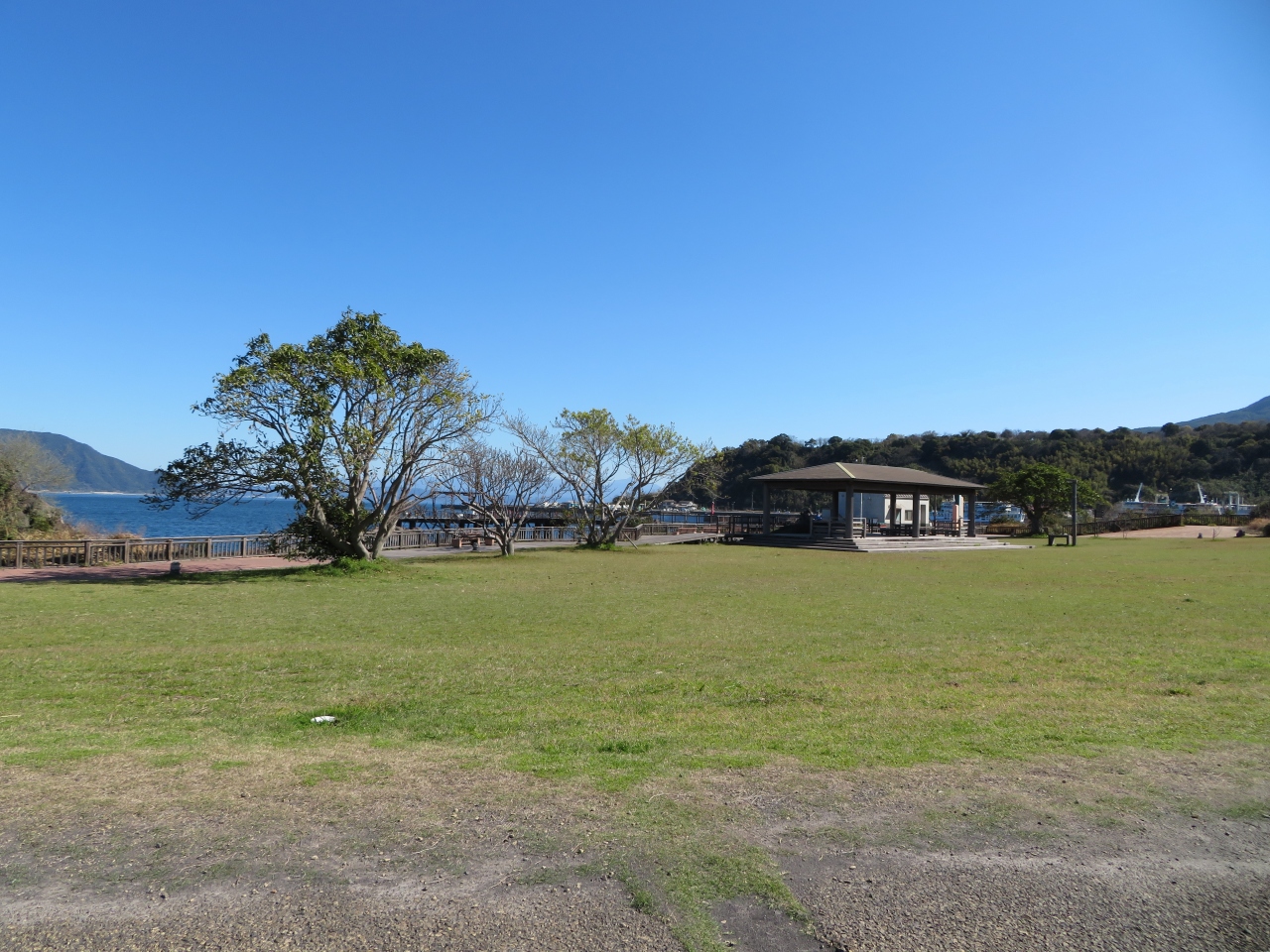 桜島フェリー乗り場から観光バスに乗ると停留所がありますし、歩いていくこともできる公園です。駐車場もあります。桜島の眺望がすばらしく、公園内には芝生が広がり、無理で解放している足湯もあって日没までは入ることができます。
