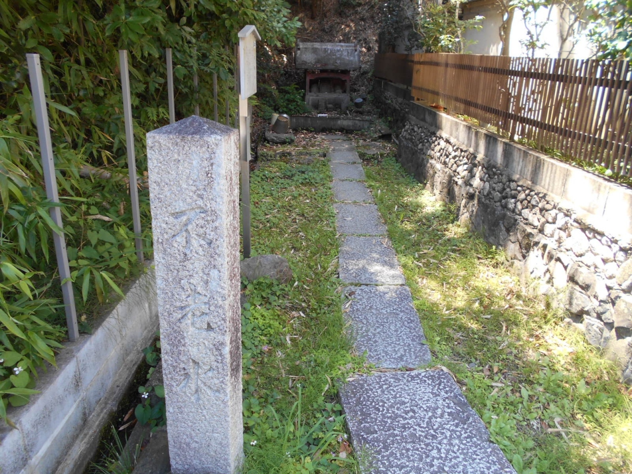平安時代中期の歌人・能因法師が不老不死を願って煎茶に使用したとされる名水の井戸。古曽部の住宅地の中にひっそりあります。最初気が付かず通り過ぎてしまいました。近隣の方に教えていただきたどりつけました。細い通路を入ると独特の水のにおいがしました。飲用こそできないが、現在でも水が湧き出ています。