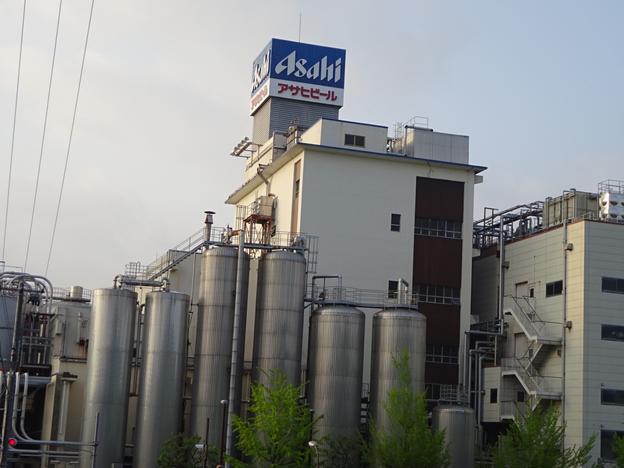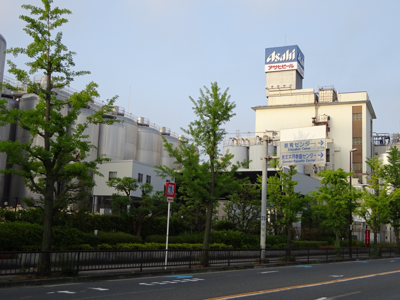 JR吹田駅から阪急吹田駅の間の大きな敷地にアサヒビールの吹田工場があり、どちらの駅からも行けます。向かいには、片山神社や片山公園があります。