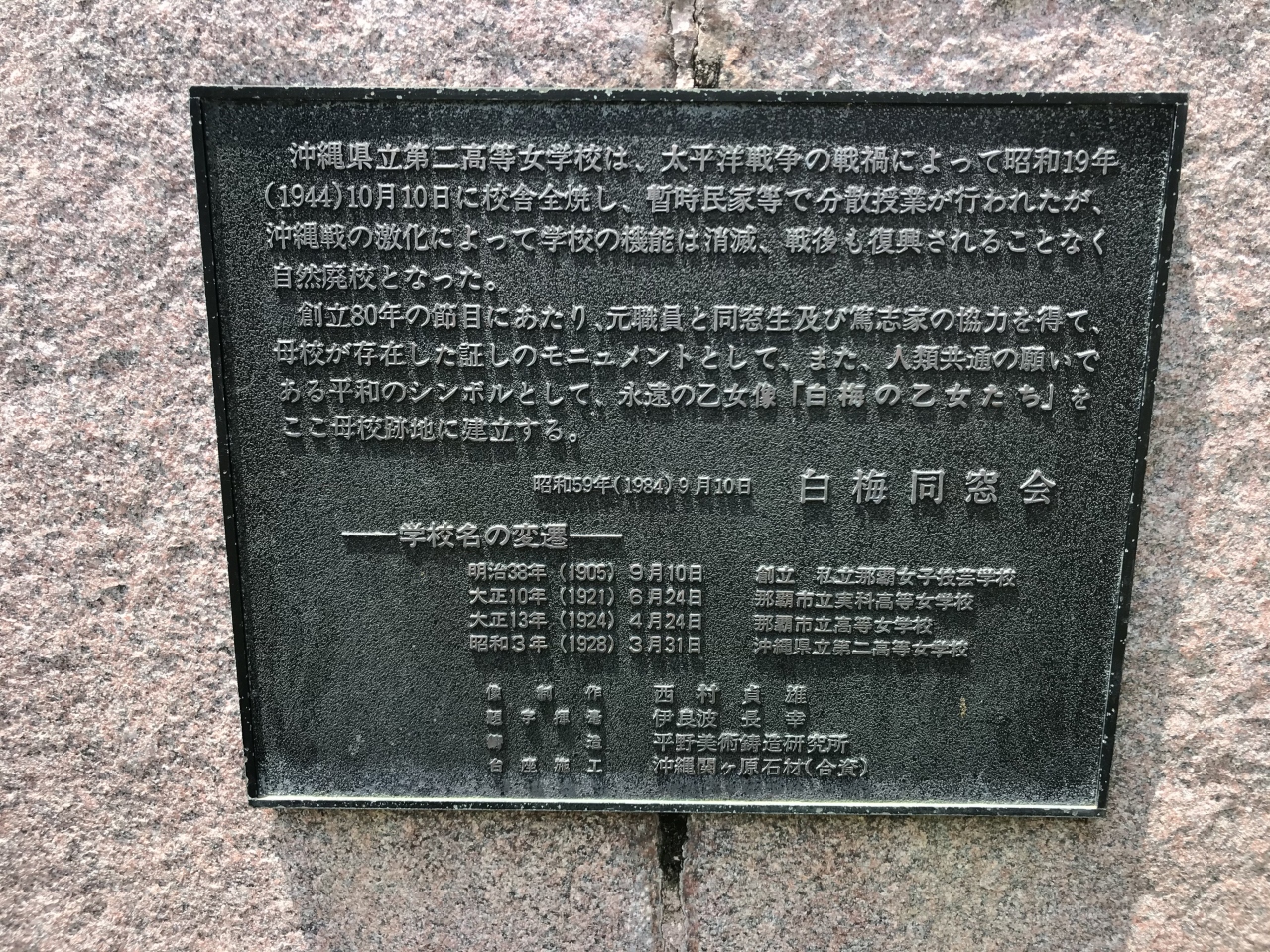 松山公園を歩いていて偶然の出会った白梅学徒隊、第二高等女学校跡の白梅の乙女たちの像