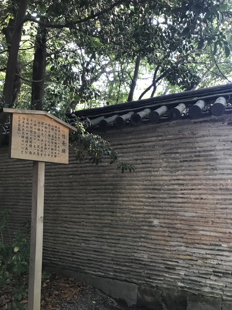 本殿手前にあり、看板なども大きくないので、素通りしてしまいがちですが、一見の価値アリの土塀です。