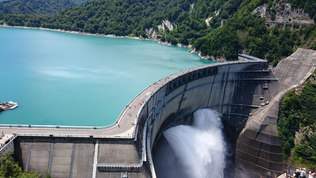 黒四ダムの観光放水は本当に大迫力です。まず音がものすごく響いて圧倒されます。さらにものすごい速さで大量の水が落ちていく様子を見るとものすごい自然の力を感じます。観光放水でダムに虹がかかったように見えるのでそれもいいですね。