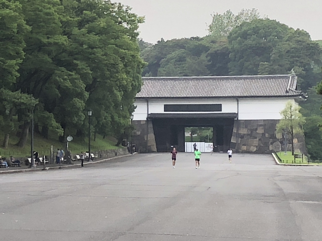 内堀通りのある皇居外苑から桜田門へ行ってみました。内堀通りから見てみても桜田門は目立ちます。国の重要文化財に指定されているだけあって、ランニングしている人の大きさと比べると防御として機能する桜田門の大きさがわかります。