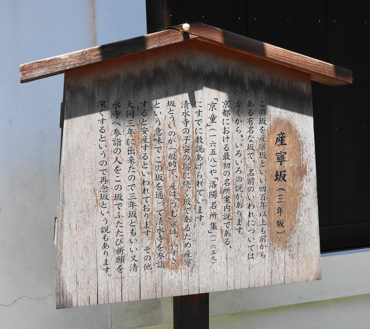 「産寧坂」と呼ぶのは、お産のため清水寺の子安観音へ祈願するための参道であったから、という説があります。