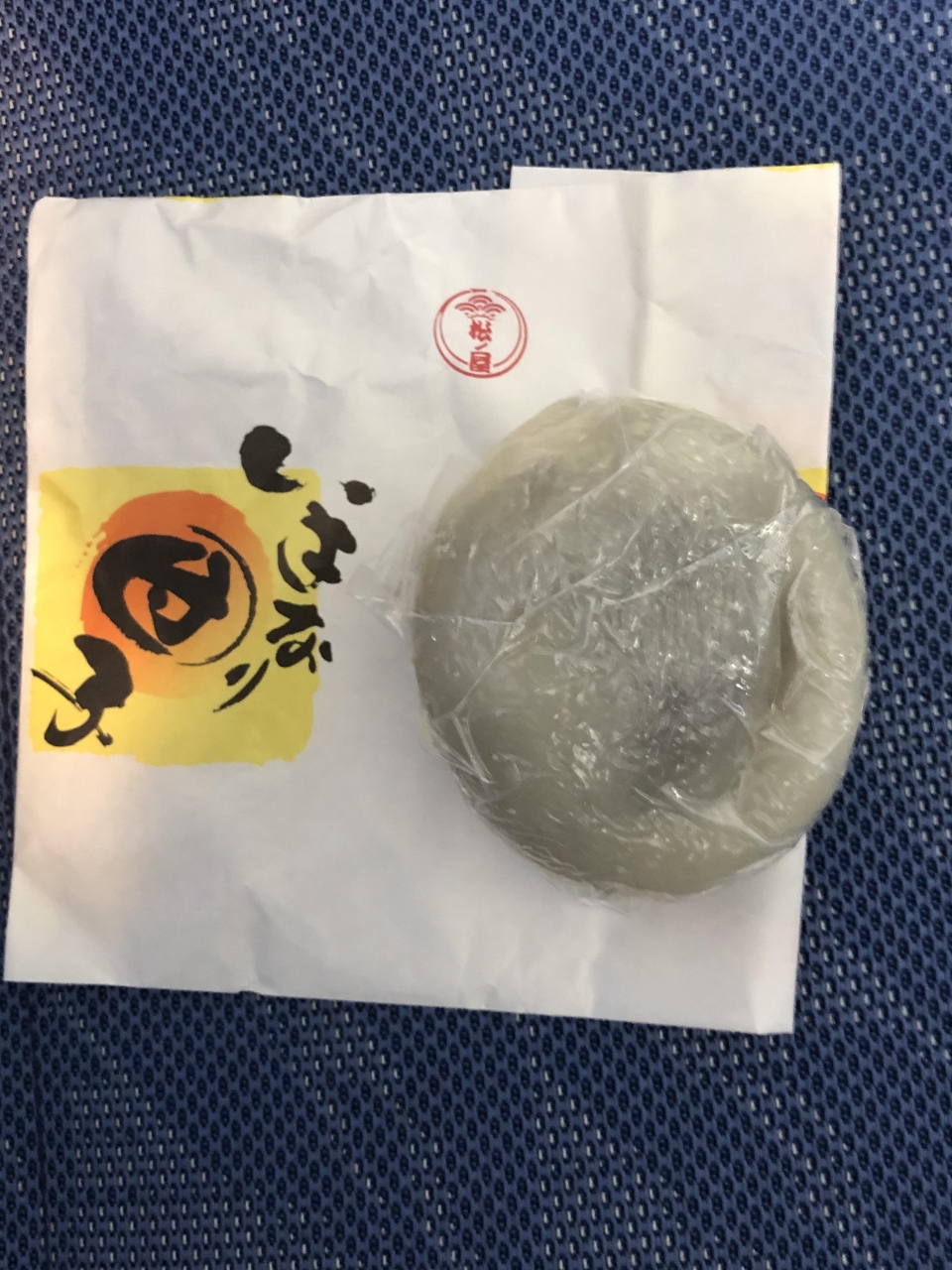 熊本といえば、いきなり団子です。1個125円でした。プレーンの白、よもぎ、紫芋があります。一人で全種類複数個購入したので、いきなり団子の保存は冷蔵で2日間、冷蔵で2ヶ月間だとレジの方が親切に説明してくれました。