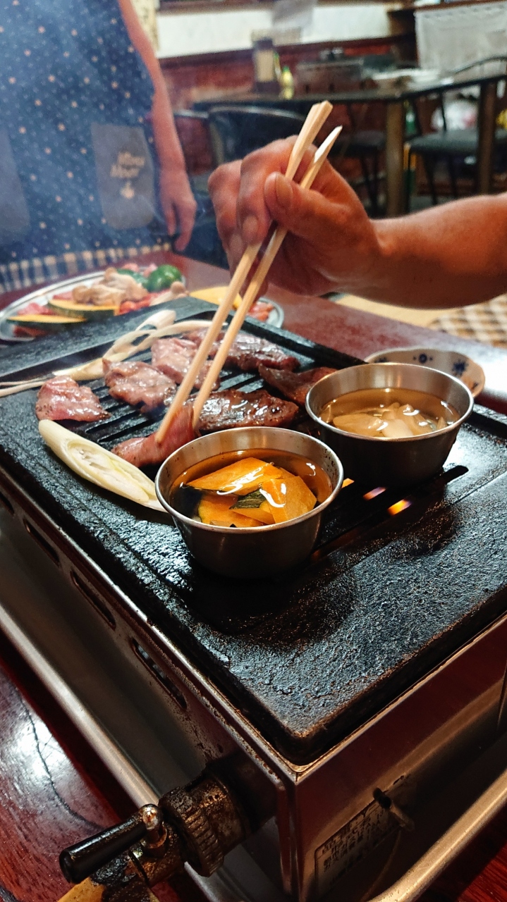 肉はどれも厚切りで、野菜も少しづつ付いていて、一人前1200円~1400円くらいの設定でした。肉の質と量を考えたら割安と感じました。また、赤字の肉もあるようです。