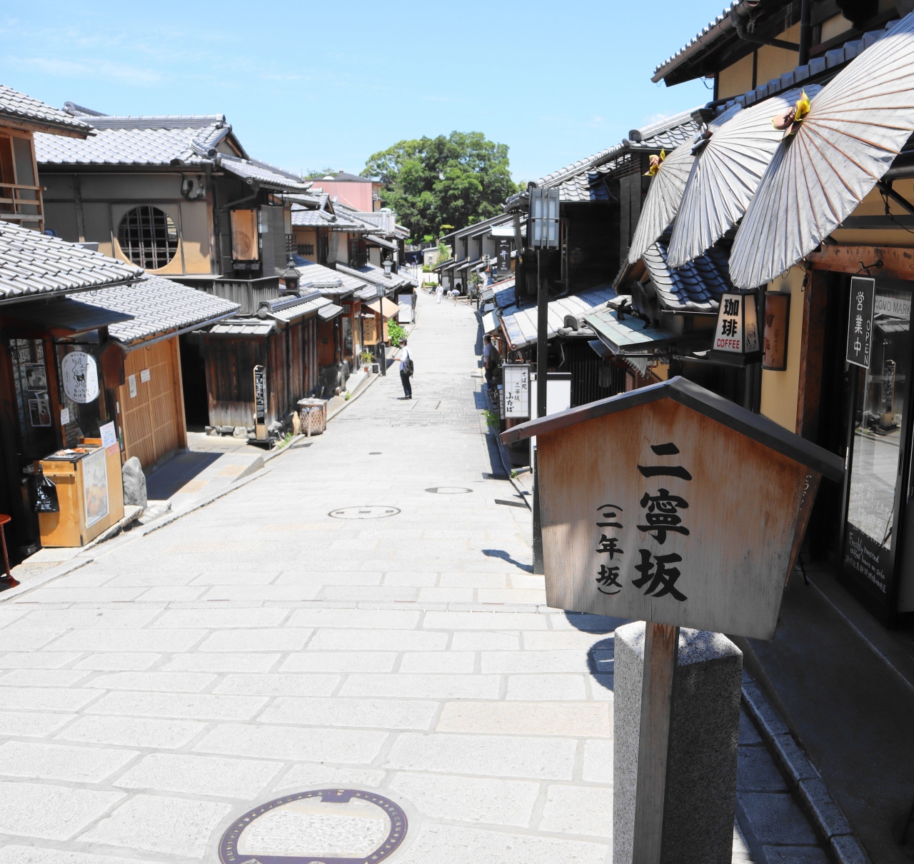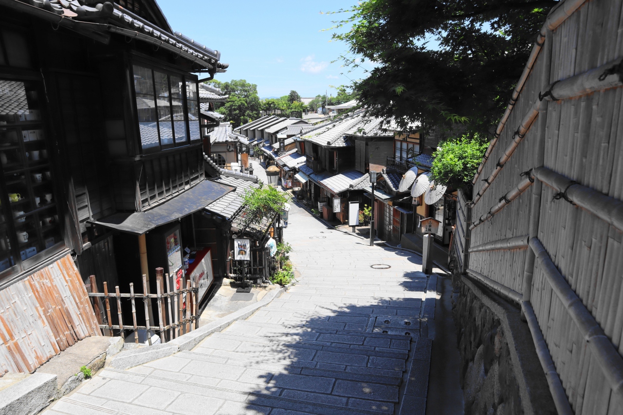 石畳の坂道に昔ながらの京町家が並び、まるでタイムスリップしたような雰囲気です。