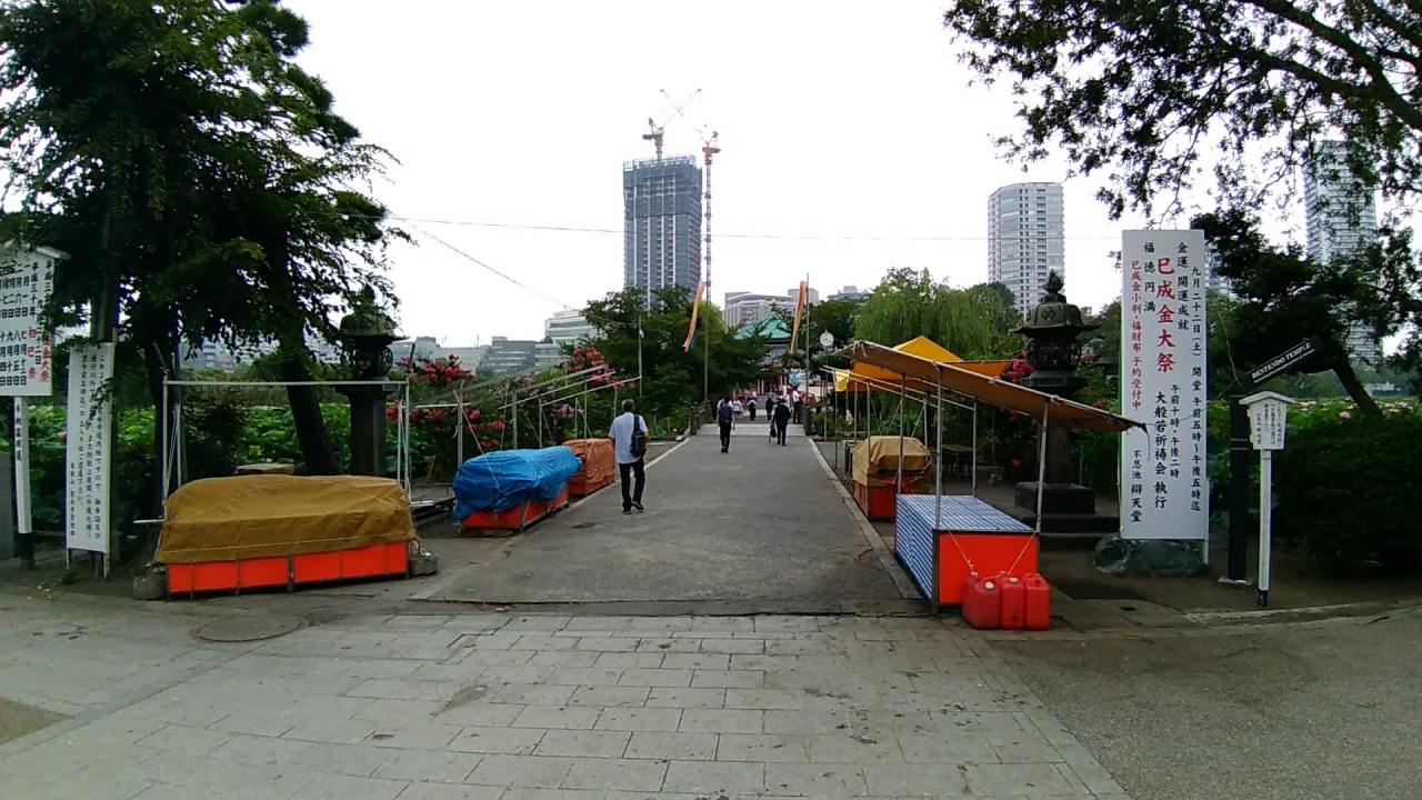 不忍池弁天堂は、不忍池の脇にあって、たいへん目立ちますので、見つけやすいと思います。一帯は昔から重要な場所だったことを認識できます。夏の訪問でしたが、添付写真の参道には、屋台が並び始めていました。この参道は、いつもすごい人混みです。