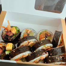 出張先やどこでもデパ地下で物色するのは楽しいものです。ここのキンパがおいしいです。もっと雑多な感じでもいいけど、こちらはかなり上品な感じです。細く切ってくれているのでひと口が食べやすいのもうれしいです。