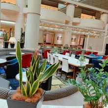 ニューオータニ1階のメインロビーのダイニングです。ここはいちごブッフェのときに何度か足を運びました。今回は宿泊して朝ごはんに利用しました。ブッフェです。おいしかったです。天井も高く開放感たっぷりでした。
