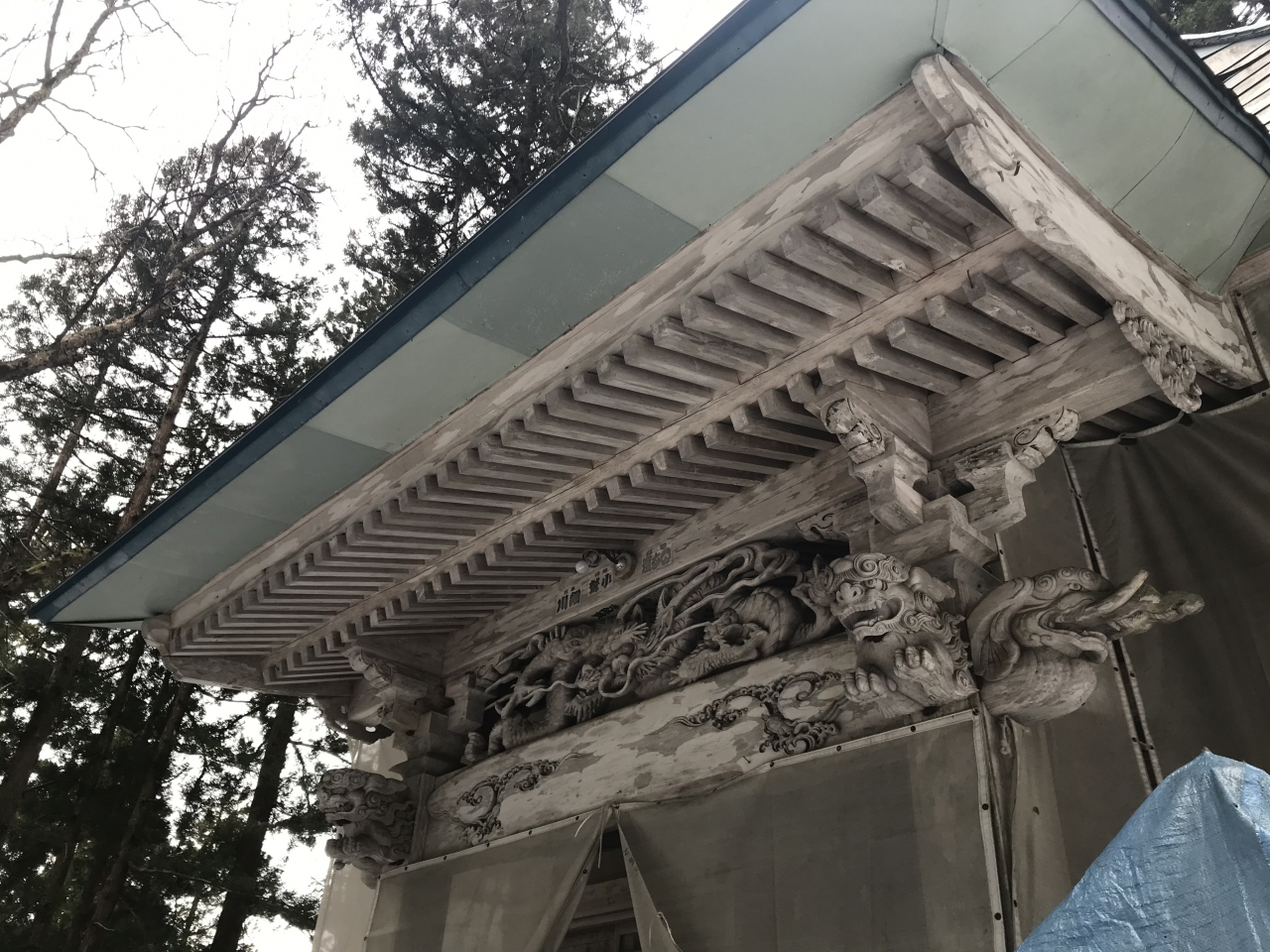 雪があちこちに積もっている冬景色の見玉不動尊でした。仁王像の門前に雪が積もっていて滑りました。仁王像に紙を投げる風習があるそうですが、「紙投げ禁止」の張り紙がありました。神社のすぐ隣に川が流れていて、雪どけ水なのか、すさまじい水の流れで、ちょっと怖かったです。