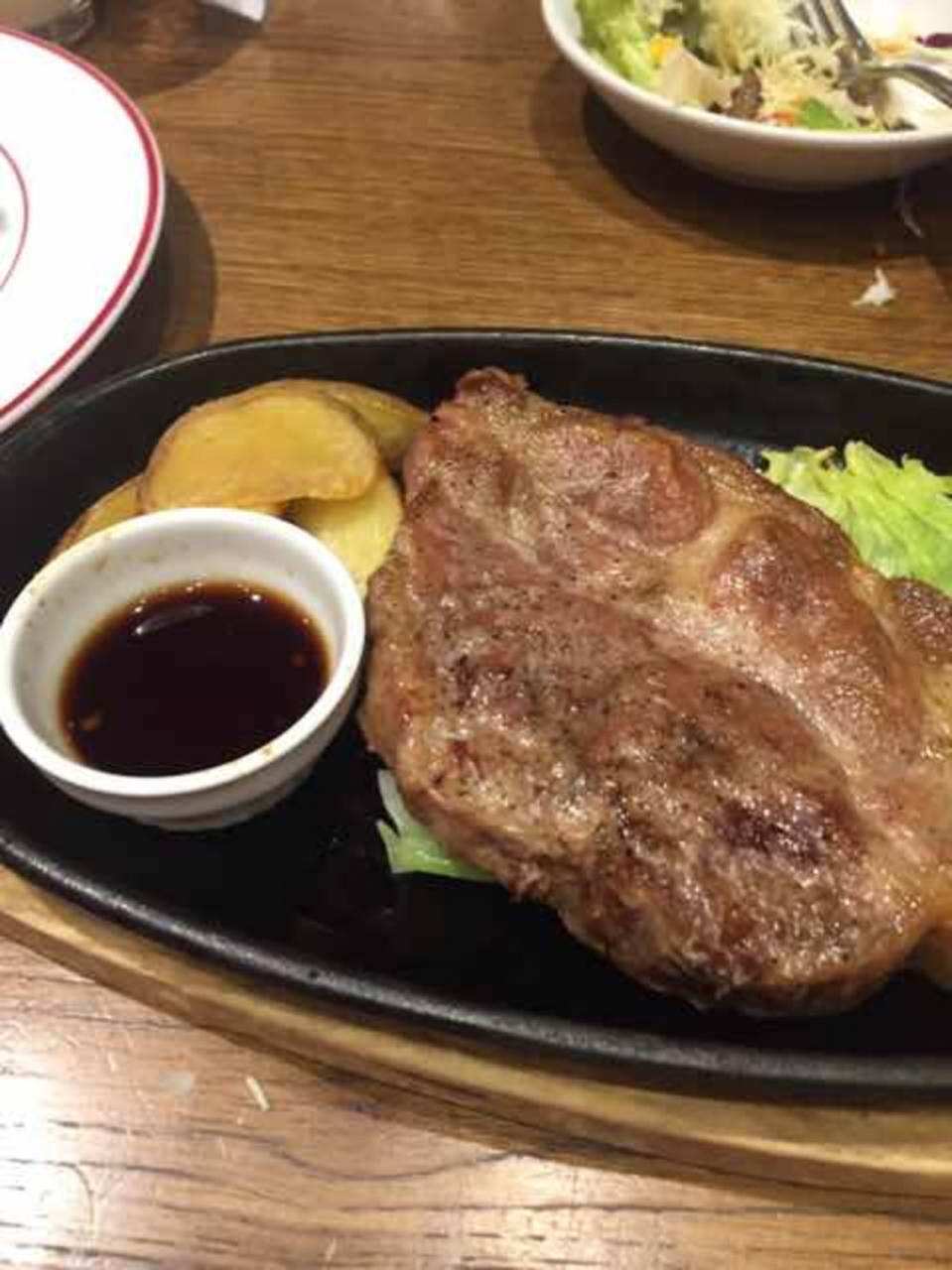 ポークステーキを食べましたが、少し肉が硬めでした。