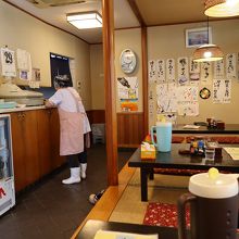 店内はテーブル席3、座敷席3と余り広くはありません。メニューは蕎麦に限らず、丼もの、定食、中華メニューもあり、選択肢が多いのが人気なのかもしれません。