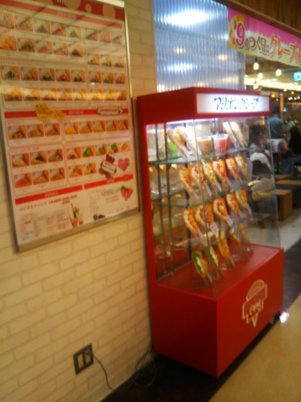 JR浜松駅にあるメイワンという商業施設のレストランエリアにありました。クレープが看板メニューの人気のお店です。もっちりしたクレープ生地にたっぷりの甘い生クリームがおいしかったです。チョコレートやカスタードなどもおすすめです。