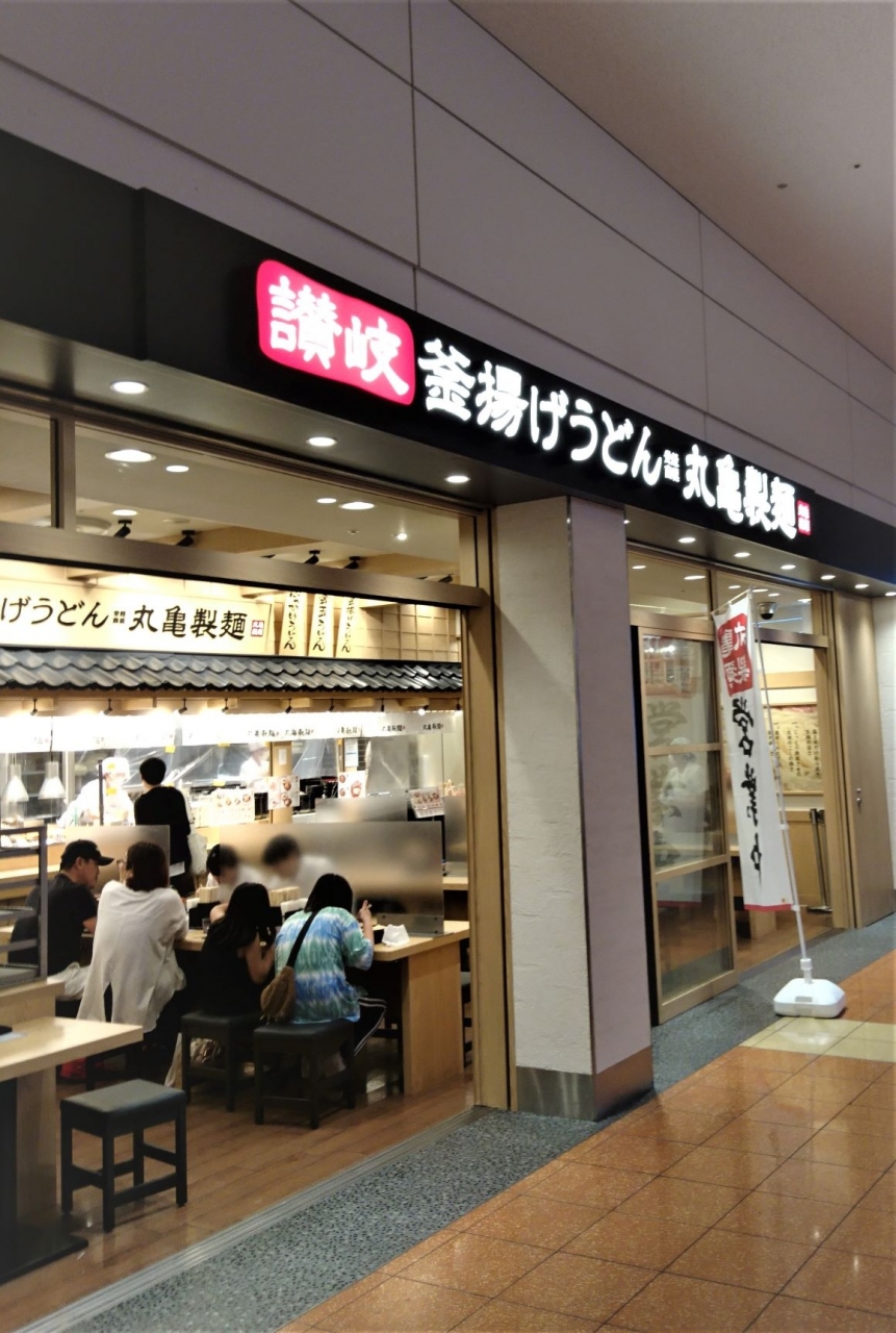 羽田空港第二ターミナル地下にある丸亀製麺の店。ちょっとわかりづらい奥まった場所にある。高級路線の店が多い空港にあって、こうした庶民派のうどんカフェテリアができてきたのもご時世だとつくづく空の旅が大衆化している証拠である。