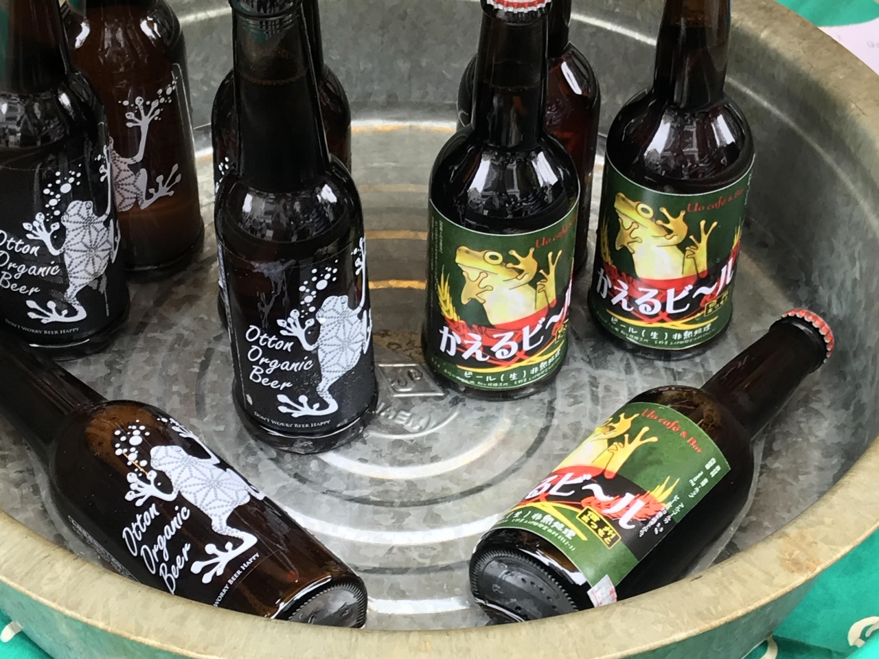 東京藝術大学の学生さんが制作した大きなカエルのオブジェが通りの入り口に配置されています。四柱神社前の狭い通りですが、小さな商店が軒を連ねています。昔、災害からカエルに守ってもらったいわれがあるそうで、オリジナル商品などにもカエルが登場していました。一番驚いたのがカエルのビールです。どんなあじなんでしょうかね。