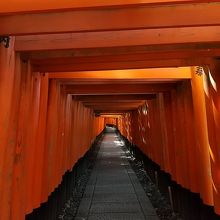 山の上もずっと鳥居が続いているのですが、「千本鳥居」と言われる入ってすぐのところが特に有名なようで、そのエリアは一回り小さな鳥居が隙間なく並んでいます。右側通行となっているのでお間違いのないように。