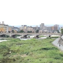 京都の町の中を流れる大きな川です。出町柳のあたりで賀茂川が合流し、鴨川と呼ばれています。