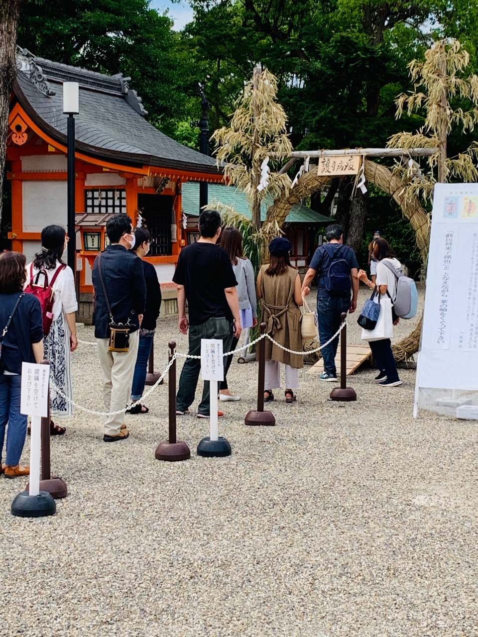 「 蘇民将来子孫也」 と となえながら 〈 茅の輪 〉をくぐる人が 長蛇の列をつくっていました。