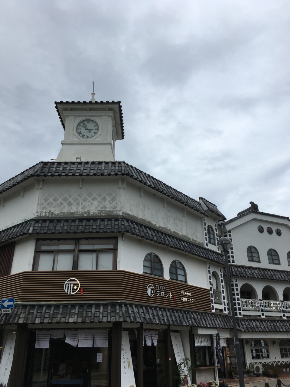 昭和36年、伊豆急下田駅の開通と同時に開業した「下田時計台フロント」は、伊豆急下田駅でてすぐ目に入りました。なんと58年も前に建てられたそうでレトロな建物でかわいいです。お土産屋さんが入っていて「下田ミルクもち」がテレビでも取り上げられた看板商品とのことで購入!