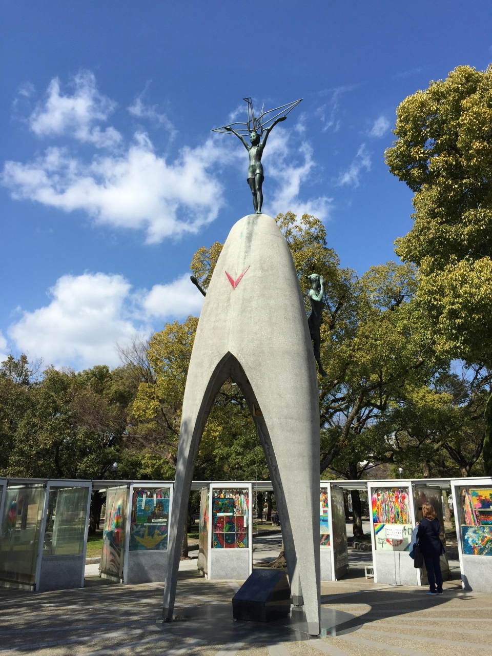 平和記念公園内にあるモニュメントのひとつです。元安橋を渡って公園に入ると、すぐの場所にありました。子供の像がモニュメントの上部に設置されており、原爆で亡くなったすべての子供たちを慰霊するために建設されたのだそうです。