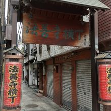 難波の裏道の、更に路地です。車も通れない細い石畳の道沿いに夜の食べ物屋さんが密集しています。昔火事でほとんど焼けちゃったけど、再建しましたね。その時道路交通法で結構揉めてたみたいだけどどうやって収拾付けたんだろうって思いました。狭い路地です。