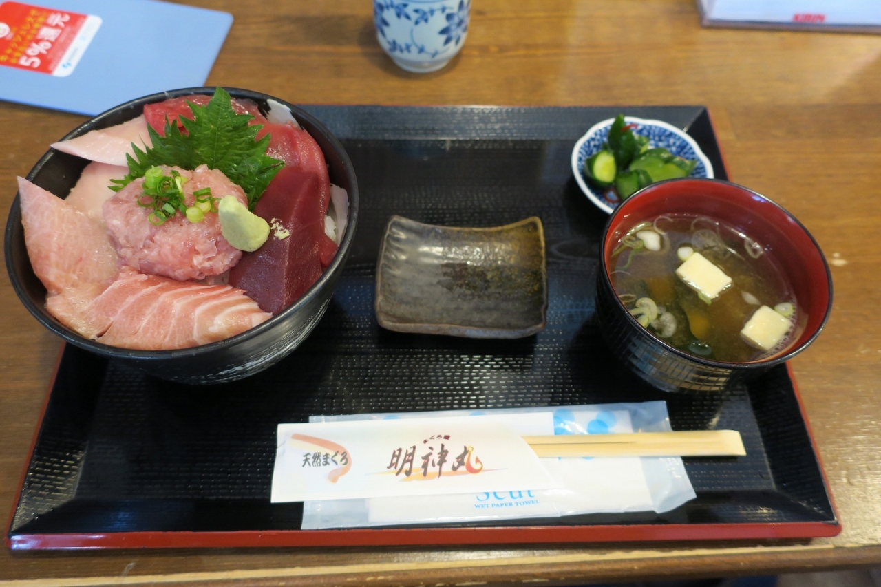 石巻線の終点、女川駅を降りてまっすぐ、通りを渡ったところに土産物屋などが集まる商店街にある。カフェなどもありどこに入るか迷うところだったが、マグロの幟に惹かれてこの店へ。「まぐろ屋」の名前通りマグロのほか、三陸名産のウニやイクラの載ったどんぶりもある。マグロは名前に恥じぬ品質。