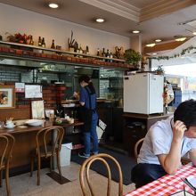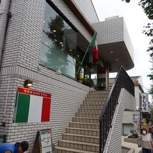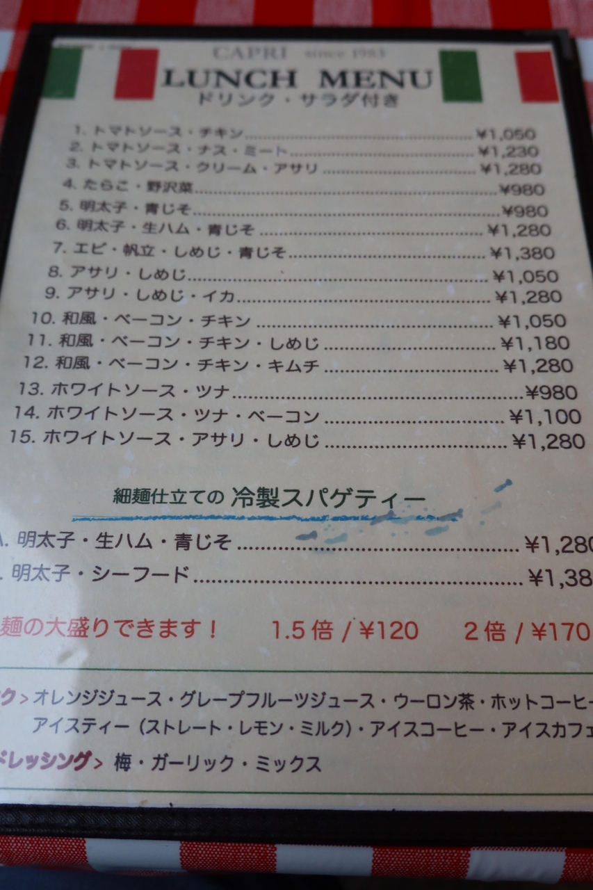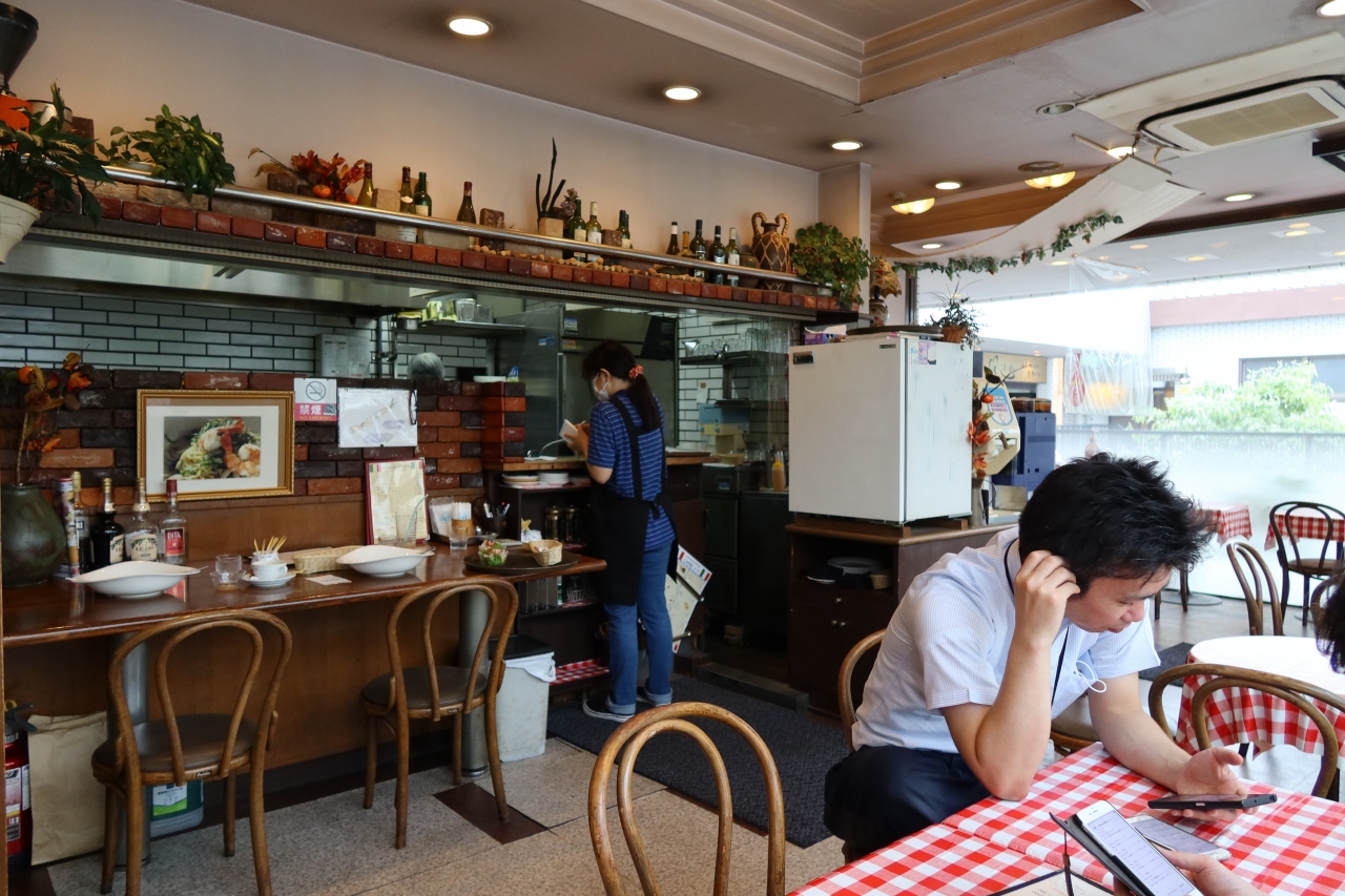 国道246号線の藤が丘ICの近くにある商業施設の2階にあるイタリア料理のお店です。店内は厨房を囲むようにL字型にテーブルが配置され、店内の雰囲気は少し古めの喫茶店と言った感じ。ランチメニューはサラダ、ドリンクが付いたパスタセット。選んだパスタは明太子と青しそのパスタ。大きな器に明太子スープに和えられた生パスタが美味しいです。生パスタがこのお店の売りですね。