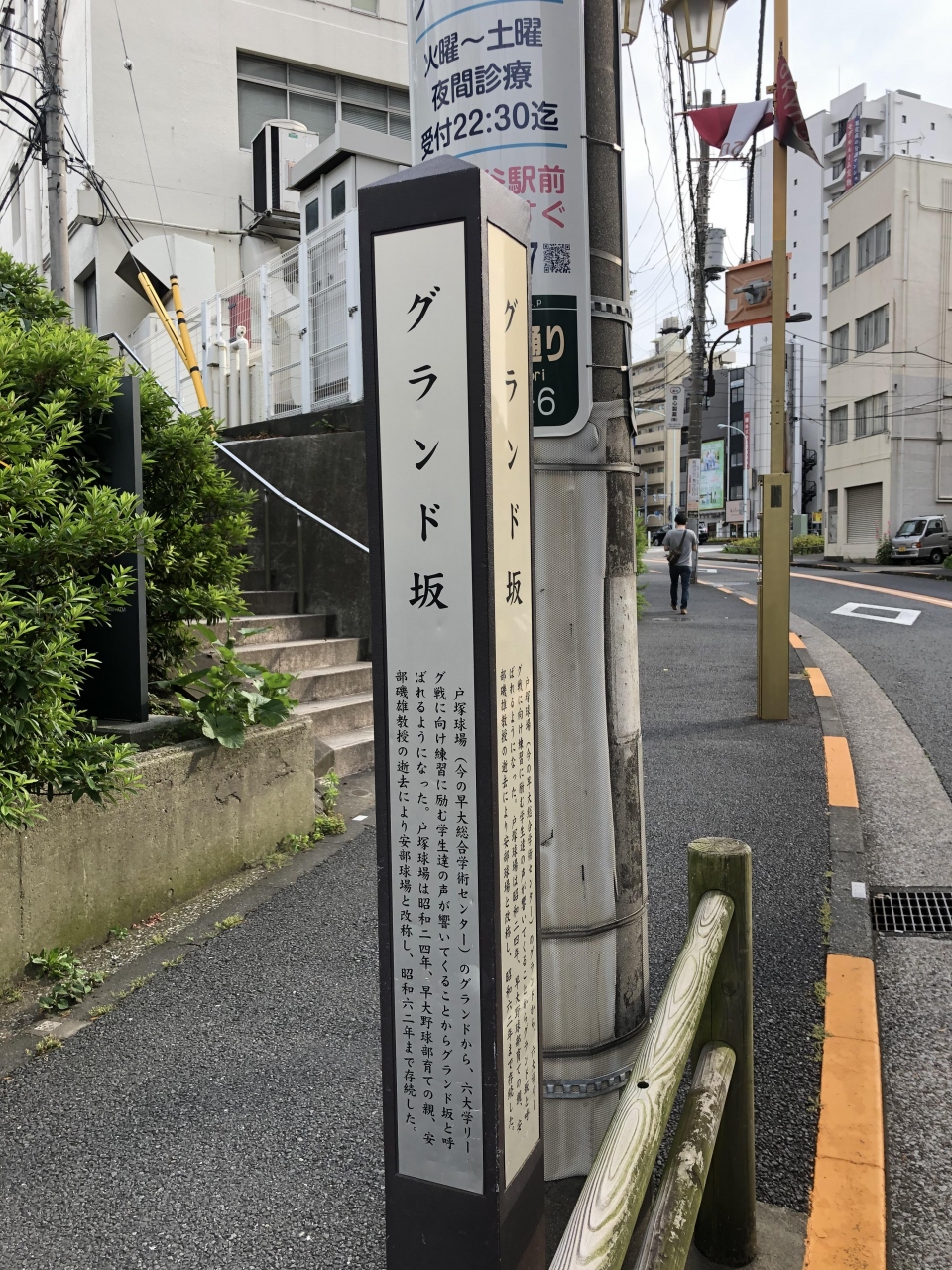 坂の標識は早稲田大学の敷地から離れたところにある