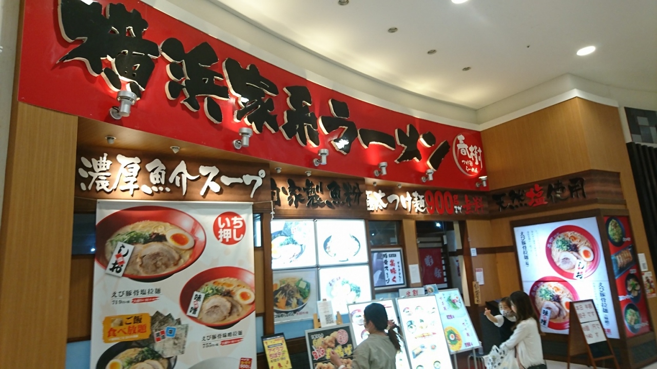柏市豊町の大型商業施設・イオンモール柏の1階レストラン街にある横浜家系のラーメン屋さんです。ランチで豚骨ラーメン730円をいただきました。 具は海苔3枚、ほうれん草、チャーシューで、極太麺と濃厚な豚骨醤油スープの一品です。豚骨のコクを感じるスープで、私好みの味。太麺にもよく絡み、美味しかったです。