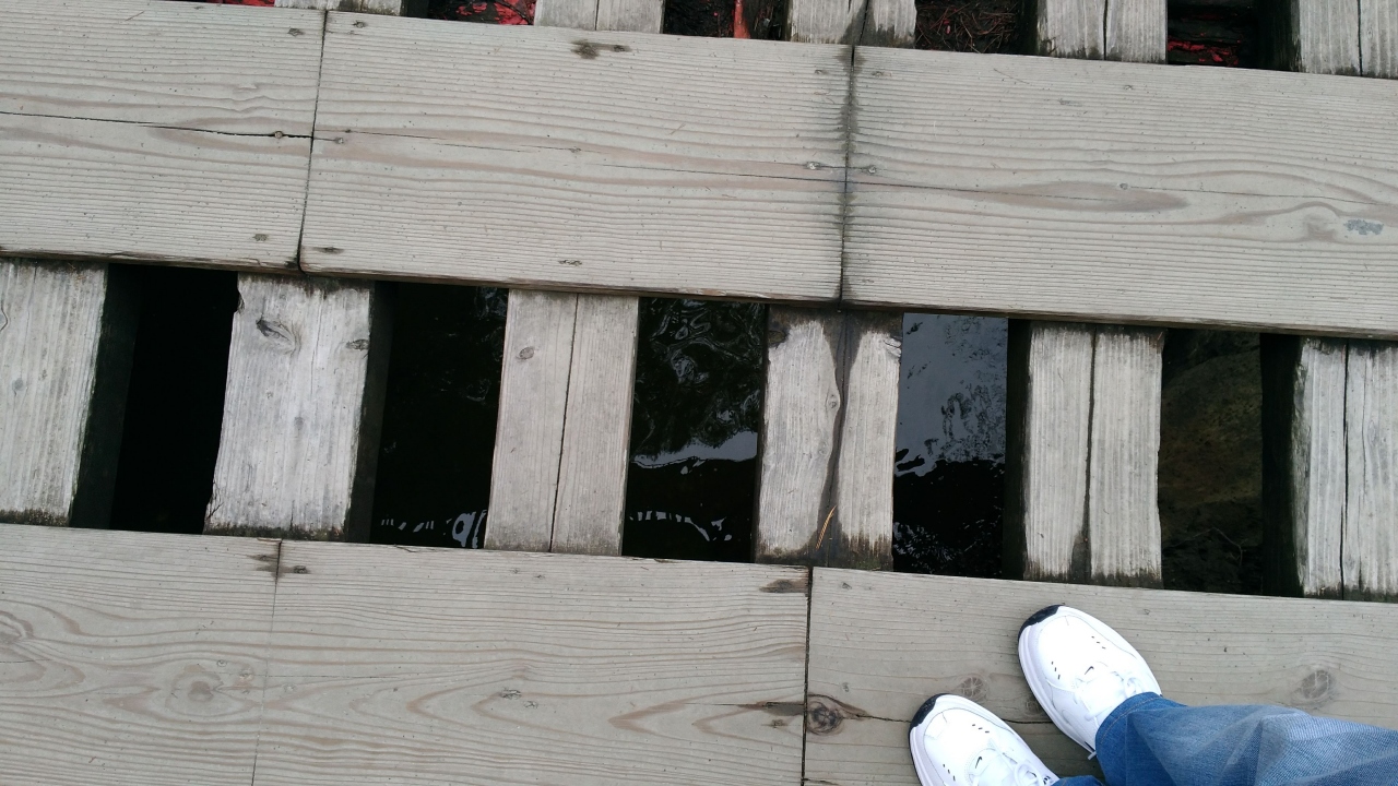 桟橋からだと海岸から少し突き出た岬のように見えますが、2本の橋で陸とつながった島になっています。
