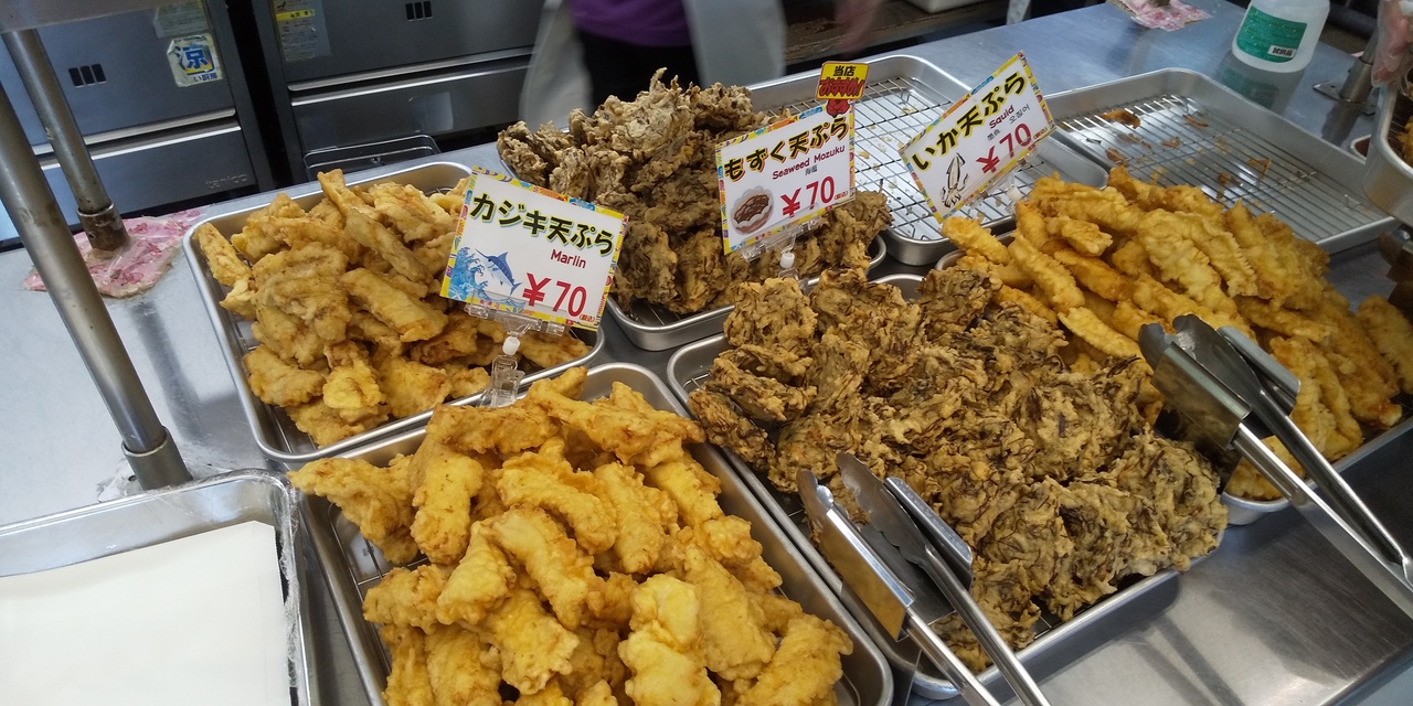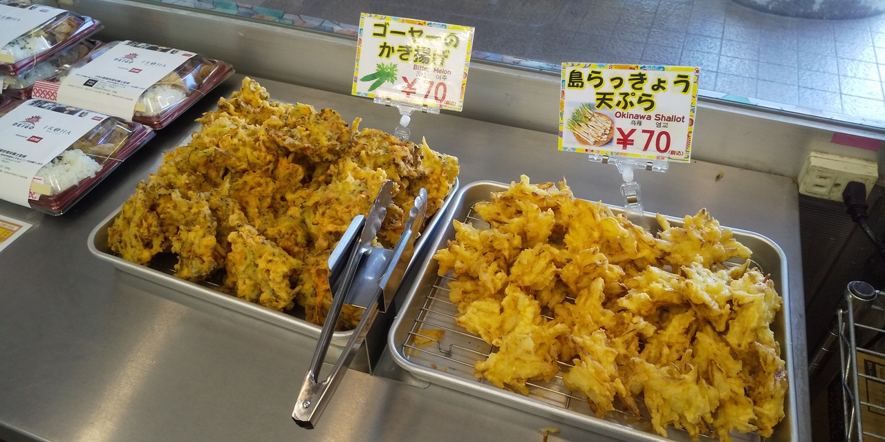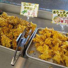 この道の駅での人気は、もずくの天ぷら、三矢のサーターアンダギー。ともに、小銭で小腹満たしが出来ますよ。