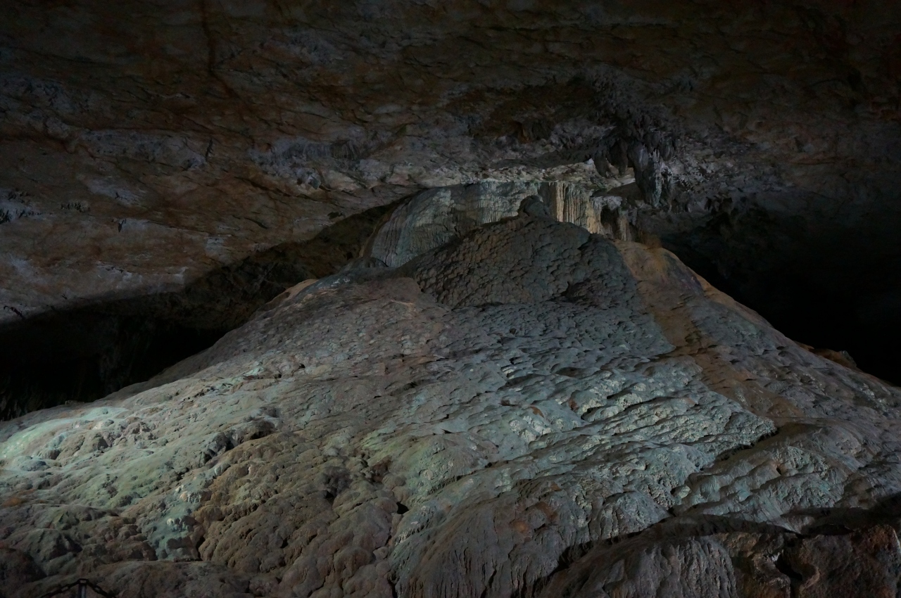 秋芳洞の中にある観光スポットです。黒谷口から入って観光しましたが、こちらの洞内富士はだいぶルートの後のほうにでてきました。名前の通り、富士山のような形をしていました。天井からたれてくる水に含まれる石灰成分が長い間蓄積してこのような形になっているそうです。