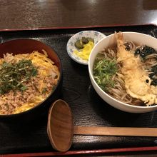 天ぷらそばとそぼろご飯のセットを食べました。ボリュームたっぷり。