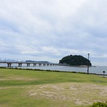 竹島の対岸にある芝生がはられた公園です。特に何かがあるというわけではありませんが、広々としてとても気持ちがよかったです。竹島を眺める絶好の場所でもあり、竹島の写真撮影もばっちりです。夏とはいえ、平日だったでいか、人出も多くなく、のんびりできました。