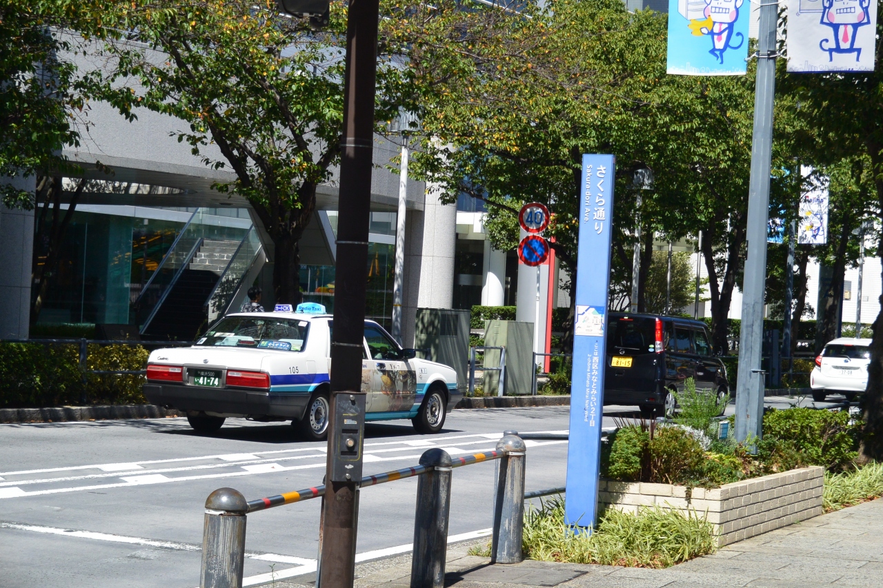 みなとみらいのランドマークタワーやクイーンズスクエア横浜に沿って伸びる道路ですが、ごく普通の道路に見えました。名前からすると、街路樹が桜で、桜の季節はきれいなのかもしれませんね。訪問時は夏だったので、緑の葉の街路樹が立ち並んでいました。
