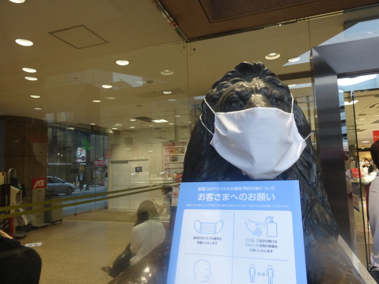 三越のライオンが大きなマスクしてるのがかわいいです。