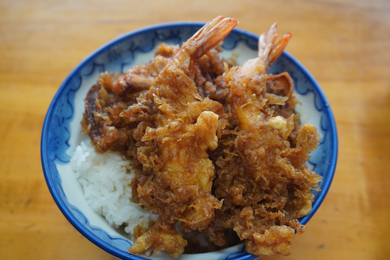 八ツ手屋は、外観からしても年季を積んだ迫力があって、いかにもてんぷらの老舗といった感じ。レジで先払いなので、天丼(中)を注文。それでもけっこうな量ですね。エビのぷりぷり感やタレがしっかり染みたかき揚げのうまさも秀逸。ただ、やっぱり、ボリューム感があるというかヘビ-なので、それなりに食欲のある時じゃないとおいしくは食べられないと思います。