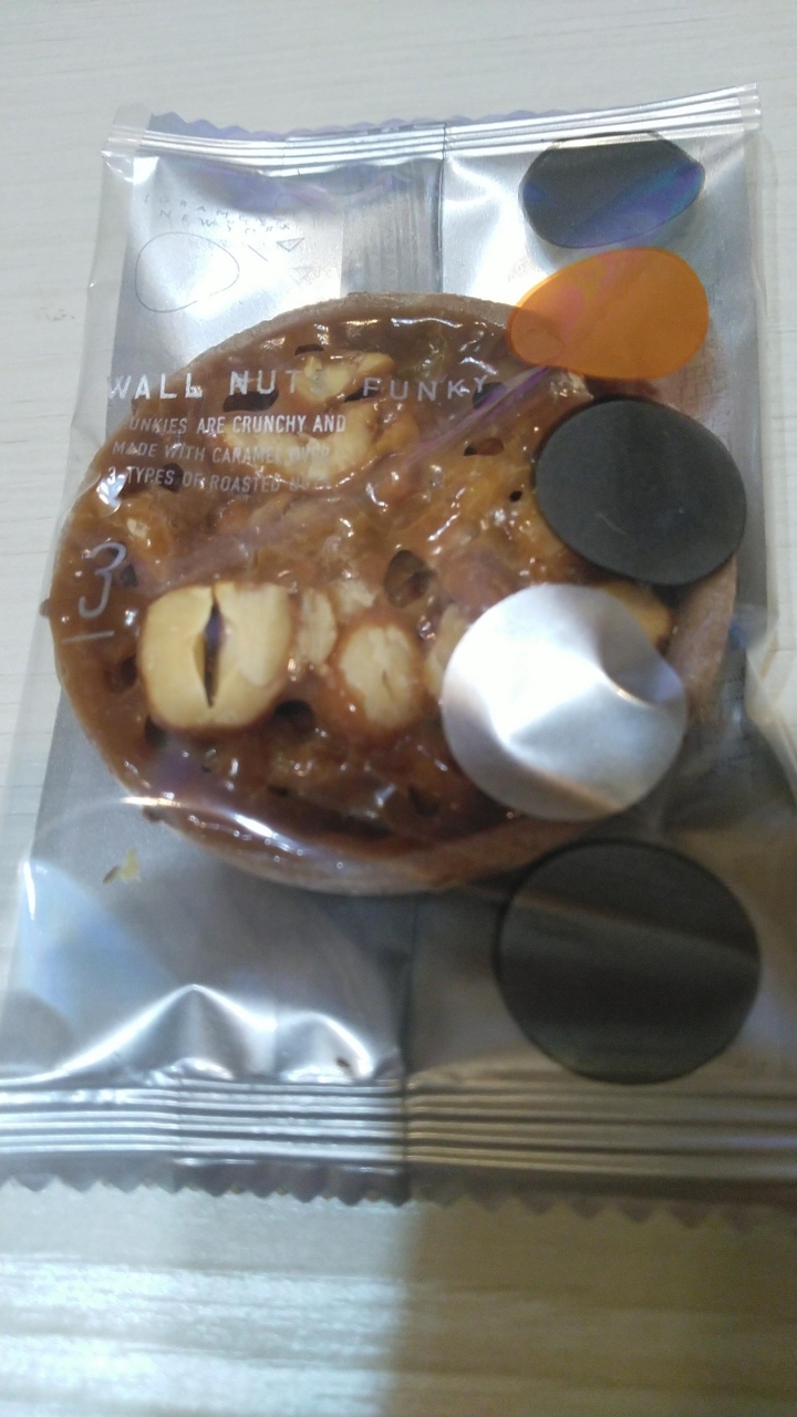 キャラメルとアーモンド、カシューナッツ、クルミが最中の皮の上に乗っています。