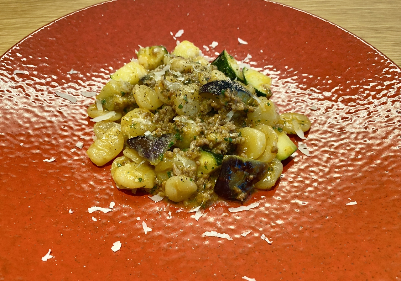 家内がオーダーした茄子とズッキーニのボロネーゼは、自家製オレッキエッテがモチモチで美味い