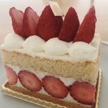 スポンジが茶色がかっているのが特徴で、沖縄県産サトウキビの本和香糖使用だそうです。生クリームがたっぷり使用されているのに甘さがかなり抑えられていて軽いので、くどさはなく一気に食べ進められました。イチゴも小ぶりだけどふんだんに使われており、みずみずしく甘いです。見た目も可愛く、通年販売なのが嬉しいです。