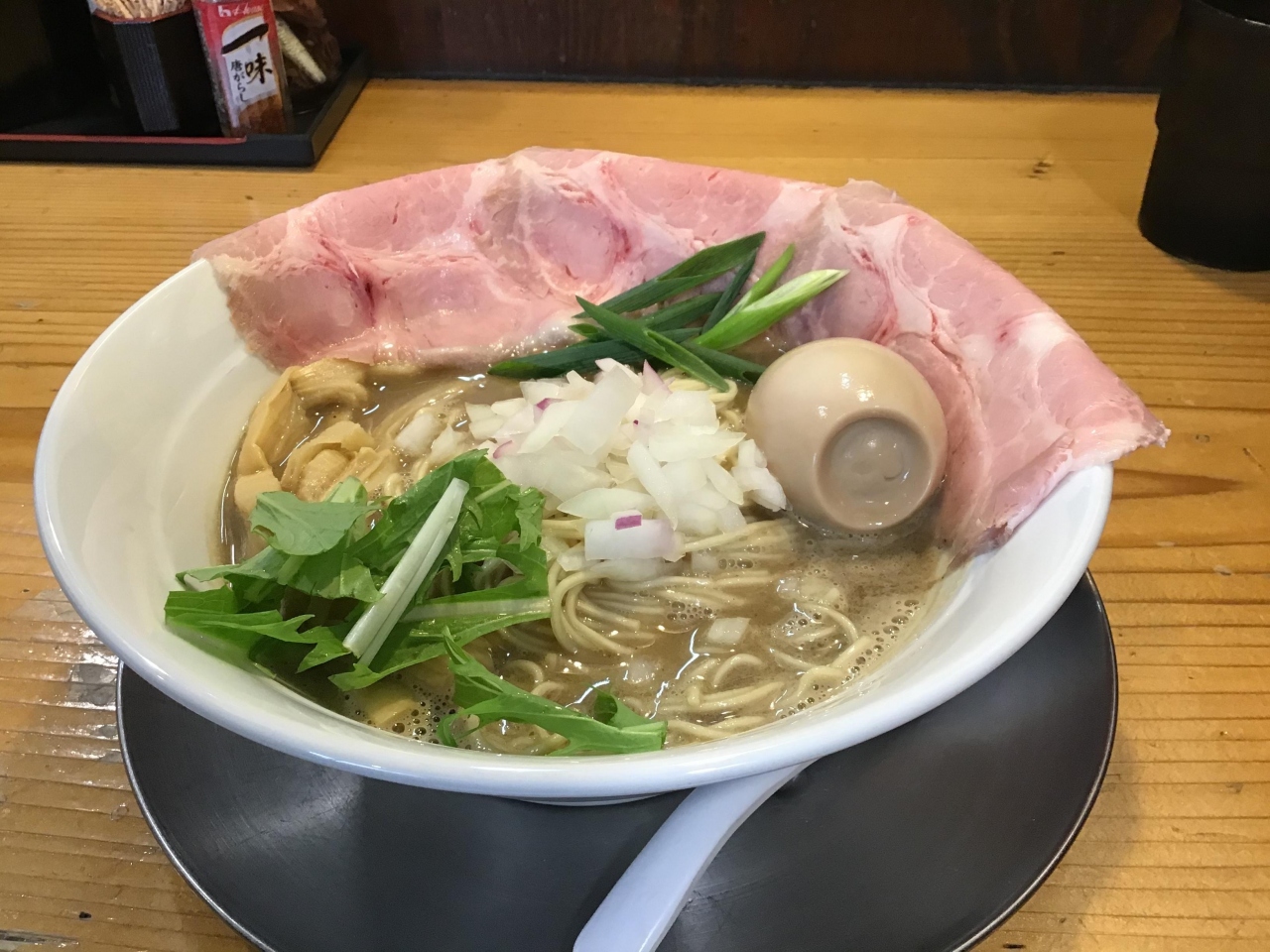 特製濃厚煮干し豚骨を注文です。