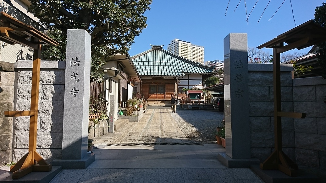 日暮里駅西口から徒歩7~8分程度、荒川区西日暮里3丁目にある法華宗陣門流の寺院です。江戸時代の慶安3年(1650年)に赤坂に創建され、明治時代に現在の場所に移転してきたそうです。小さな寺院で、あまり特徴はありませんでしたが、境内に少年飛行兵慰霊碑がありました。