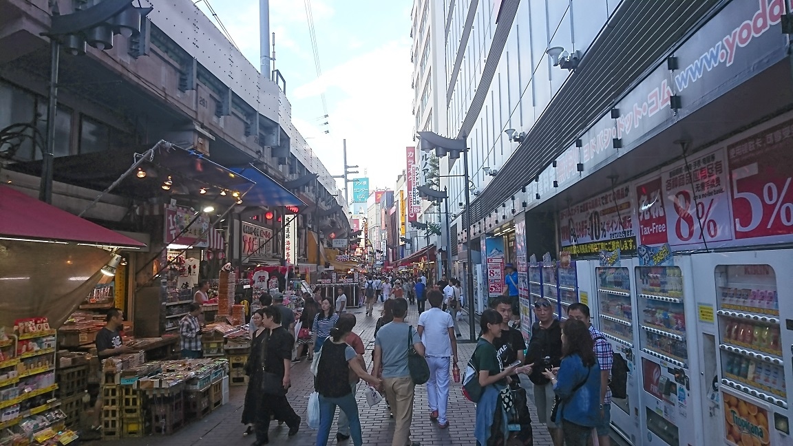 上野駅から御徒町駅までのJR高架に沿いにある全国的にも有名な商店街です。約400m続き400軒以上のお店で構成されているそうです。お魚屋さん、お菓子屋さん、乾物屋さん、衣料品店、雑貨店、スポーツ用品店、薬屋さんなどが並んでいます。最近では外国人観光客も目立ち、東京を代表する観光地になっています。