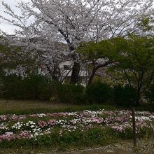 ちなみにこの日の場合、桜の下、小規模ながら色とりどりの花を楽しむことが出来ました。